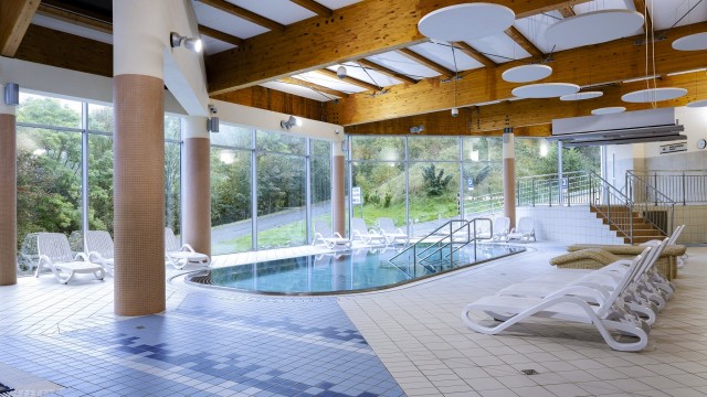 - Dodatkowo w hotelu jest możliwość skorzystania z różnego rodzaju zabiegów, takich jak inhalacje, magneto- lub elektroterapia, drenaż limfatyczny czy okłady borowinowe.