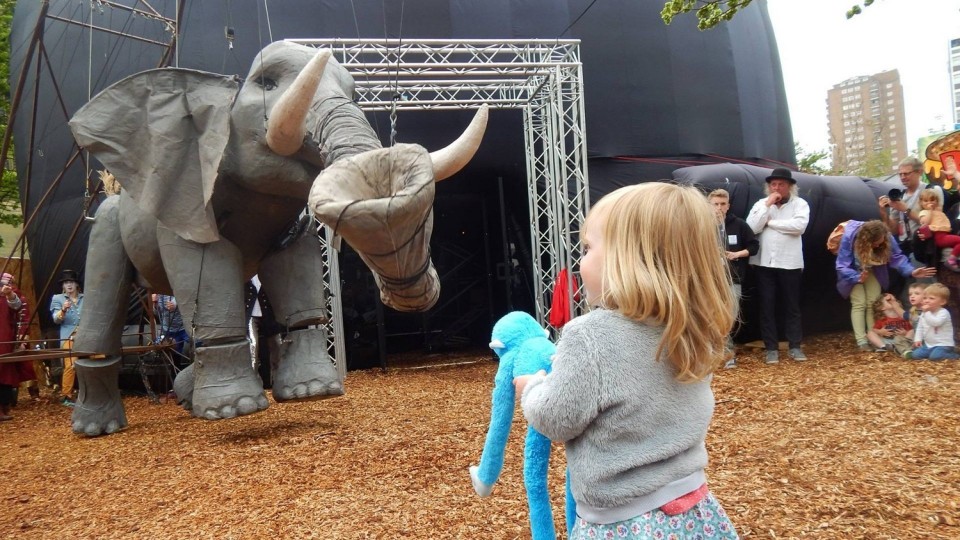 W spektaklach granych głównie na łąkach i ulicach udział biorą:- ogromne lale,